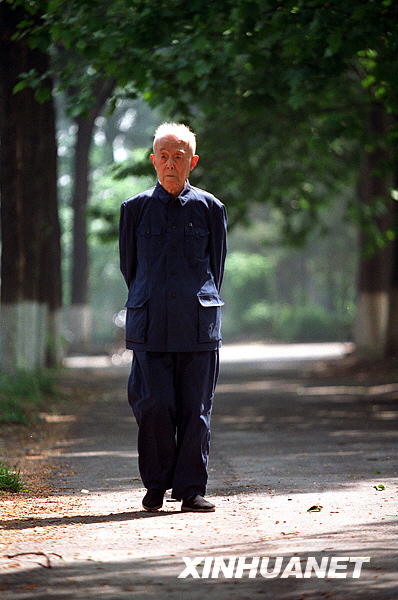 季羨林在北大校園散步(1997年10月10日攝)。7月11日上午9時,我國著名學者、國學大師、北京大學資深教授季羨林先生在北京301醫(yī)院辭世,享年98歲。新華社記者唐師曾攝