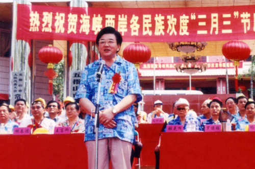 2005年3月,徐剛主任在海峽兩岸各民族歡度“三月三”節(jié)慶活動(dòng)上致辭。(資料照片)