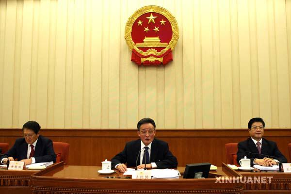 10月28日,十屆全國人大常委會(huì)第三十次會(huì)議完成各項(xiàng)議程后在北京人民大會(huì)堂閉會(huì)。吳邦國委員長主持會(huì)議。 新華社記者 李濤攝