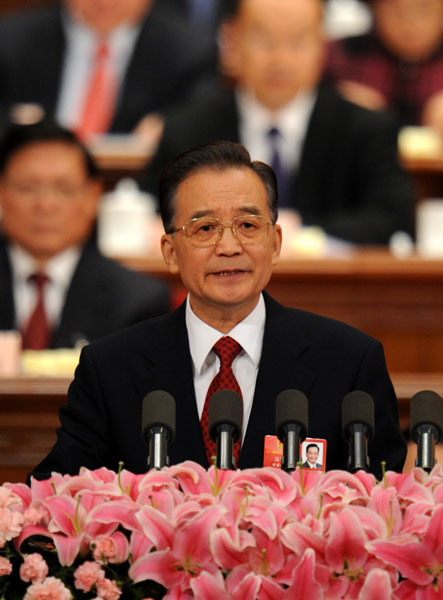 3月5日,第十一屆全國(guó)人民代表大會(huì)第二次會(huì)議在北京人民大會(huì)堂開幕。國(guó)務(wù)院總理溫家寶作政府工作報(bào)告。新華社記者 樊如鈞攝