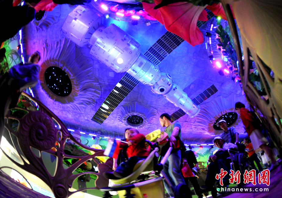 5月2日,上海世博園俄羅斯館內(nèi)的奇幻景觀吸引吸引許多兒童前往參觀!皟和壑械奈磥硎澜纭笔嵌砹_斯館所反映的重要主題。中新社發(fā) 廖攀 攝