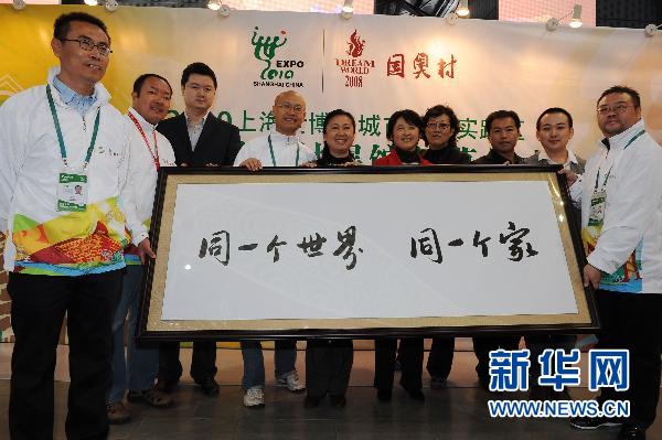 10月31日,上海世博園北京案例館“國奧村”展館的工作人員向“國奧村”項(xiàng)目代表贈(zèng)送牌匾。