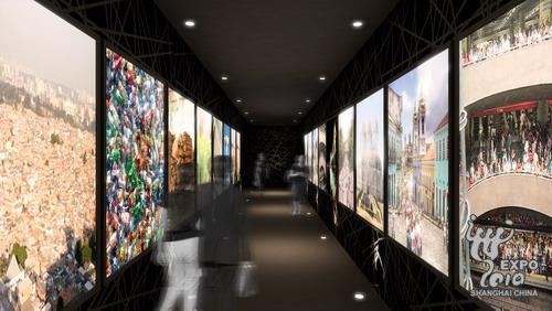 城市風光展廳將包括170平米的城市風情隧道,在這里,192塊不同尺寸的液晶顯示器將形成一個壯觀的大型液晶電視墻,通過變化的圖像向參觀者展示信息技術與城市發(fā)展、文化平等與城市復興等主題和城市風情,以及圍繞2014年世界杯各主辦城市相關旅游景點而展開的主題活動等內容。參觀者可以觸摸甚至轉動屏幕,看到不同角度的城市風貌。