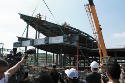 昨天,上海世博會(huì)美國(guó)館建設(shè)工程鋼結(jié)構(gòu)封頂