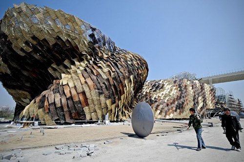 在西班牙館主體落成儀式上,設(shè)計(jì)師貝妮代塔塔利亞韋(Bendetta Tagliabue)難以抑制心中的喜悅。她同西班牙展區(qū)總代表瑪麗亞 特納(Maria Tena)站在一起,不時(shí)環(huán)顧場(chǎng)館四周指指點(diǎn)點(diǎn),又不時(shí)地咧開(kāi)嘴開(kāi)心大笑起來(lái)。