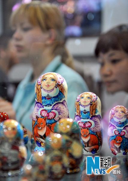 5月2日,俄羅斯傳統(tǒng)工藝品套娃受到游客的追捧。新華社記者王定昶攝