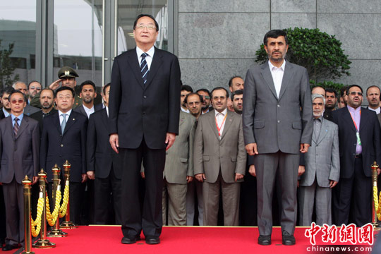 6月11日,伊朗總統(tǒng)艾哈邁迪·內(nèi)賈德在上海世博園出席伊朗國家館日活動。圖為內(nèi)賈德與中共上海市委書記俞正聲(左)出席伊朗國家館日升旗儀式。中新社發(fā) 湯彥俊 攝