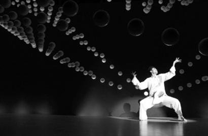 “活力矩陣”由1008個(gè)白色小球組成,每個(gè)小球直徑15厘米。這些小球均由導(dǎo)線牽引,整體由電腦控制,表演背景則是四季輪回。從冬天開始,經(jīng)歷春夏秋冬的輪回之后,最后回到春天。離表演結(jié)束還有1分34秒時(shí),一位太極舞者突然出現(xiàn)在舞臺(tái)上,長(zhǎng)袖善舞、進(jìn)退自如,讓人大呼精彩。