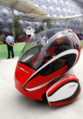 汽車館(網(wǎng)上汽車館)概念車EN-V“驕”行駛在世博園內(nèi)。 趙昀 早報資料