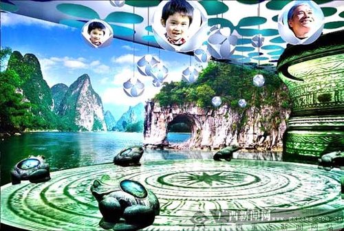 參觀者不能錯(cuò)過的是,展廳內(nèi)人工置景與視頻互動(dòng),給人以身臨桂林山水其境的感受。原來展廳內(nèi)左側(cè)有一塊長(zhǎng)寬約是8米×6.5米的大型LED視屏,將播放桂林山水的宣傳片。在視屏周圍,工作人員布置有栩栩如生的象鼻山造型,山體上部與后部滿覆綠色植被,山體下部用視頻技術(shù)“融”入大屏幕上的漓江,與巨型LED視屏形成互動(dòng),將給人們?cè)斐缮砼R其境的錯(cuò)覺。