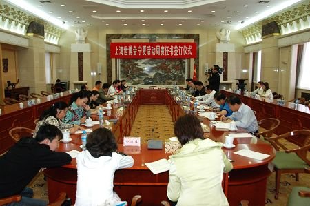 寧夏參與上海世博會(huì)籌備委員會(huì)辦公室和自治區(qū)文化廳有關(guān)領(lǐng)導(dǎo)與活動(dòng)承辦單位簽訂責(zé)任書(shū)。