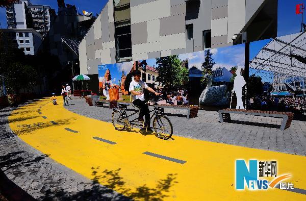 上海世博園歐登塞案例館中的專用自行車道(5月7日攝)。在上海世博園區(qū)浦西展區(qū)的城市最佳實踐區(qū)歐登塞案例館設(shè)有一條自行車道,游客可以感受一下“騎車游世博”的感覺,而歐登塞案例館的名稱就是“自行車的復(fù)活”。一百多年前,丹麥城市歐登塞就建設(shè)了第一條專用自行車道,從那時起到現(xiàn)在,歐登塞政府始終把發(fā)展重心放到限制發(fā)展汽車、鼓勵市民以騎自行車為主要出行方式的努力上。如今這個有20萬人的城市擁有超過40萬輛自行車,不少家庭甚至擁有超過十輛自行車。每個來世博園歐登塞案例館的游客,都忍不住要嘗試一下在歐登塞這個自行車城騎車的感覺。十歲的男孩楊焱淇是來自西安青年路小學(xué)的學(xué)生,平時也喜歡騎自行車。這次父母帶著他來上?词啦⿻患胰跍(zhǔn)備在上海停留一個星期時間。5月7日,他們專門來到歐登塞案例館,想親自體驗一下來自丹麥的自行車和專用自行車道。 “我們西安也有自行車道,但并不是每條街都有,有的時候騎車的人不得不和汽車或行人混在一起,感覺很緊張”楊焱淇說。工作人員先為楊焱淇和他爸爸準(zhǔn)備了一輛雙人自行車,父子倆配合得不好,在自行車道搖搖晃晃地騎了一個來回后,楊焱淇自已挑了一輛適合他身高的自行車,爸爸為他帶上丹麥傳統(tǒng)的自行車安全帽,他一個人在自行車道上騎了過去。工作人員介紹,在歐登塞,開車的人必須讓騎車的人。自行車道除了自行車,行人和汽車都不能通過,否則會受處罰。“我覺得這樣沒有干擾最安全”楊焱淇說,“希望在我們的城市里也能修這么寬敞的自行車專用道,讓我們能安全地騎車”。不過楊焱淇也有擔(dān)憂,他說,中國人太多了,如果也都騎車出行的話,是不是工作效率會受到影響。歐登塞案例館的工作人員認(rèn)為,鼓勵騎自行車的好處是明顯的。數(shù)據(jù)顯示,在最近四年里,歐登塞的交通事故下降了20%,日均二氧化碳排放量降低了8.7噸。歐登塞已經(jīng)制定了具有遠(yuǎn)見的交通與流動性計劃,主要以步行、自行車以及公共交通工具為主要出行方式。選擇騎自行車,就是選擇了一種健康和環(huán)保的生活。這是未來城市建設(shè)和人們生活的必然發(fā)展趨勢。結(jié)束自行車體驗后,楊焱淇一家三口準(zhǔn)備離開,通過這樣的參觀與體驗,小男孩顯然想得更多,他說“這次世博會我最喜歡的地方就是這個案例區(qū)域,每一樣?xùn)|西背后都很奇妙,以前老聽說環(huán)保、低碳等概念,在這里可以看到活生生的例子”。新華社記者 程敏 攝
