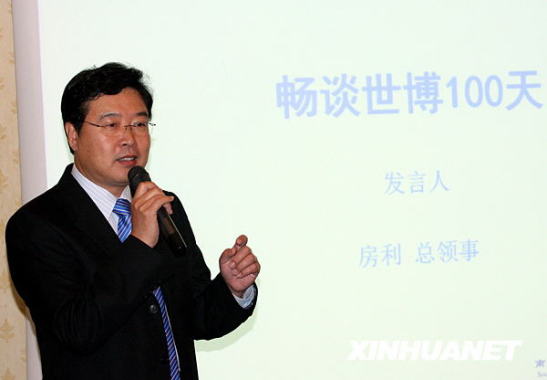 1月21日,在南非首都約翰內(nèi)斯堡,中國駐約翰內(nèi)斯堡總領(lǐng)事房利暢談上海世博會(huì)倒計(jì)時(shí)100天。新華社發(fā)(梁銓攝)