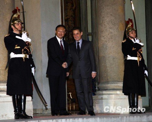 巴黎時(shí)間4日下午,薩科齊在總統(tǒng)府愛(ài)麗舍宮會(huì)見(jiàn)了楊潔篪,雙方進(jìn)行了長(zhǎng)時(shí)間交談。會(huì)見(jiàn)結(jié)束時(shí),愛(ài)麗舍宮大院內(nèi)已是華燈璀璨。薩科齊親送楊潔篪至總統(tǒng)府門(mén)外。