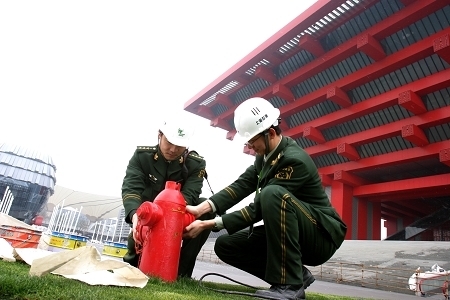 目前,世博園區(qū)布展進(jìn)入沖刺階段,消防部門晝夜監(jiān)管施工用火。同時(shí),公安部消防局也派遣約60名各省區(qū)市消防員,進(jìn)入正在布展的世博中國地區(qū)館進(jìn)行防火監(jiān)督,他們將助陣各自地區(qū)展館的消防安保直到世博結(jié)束。