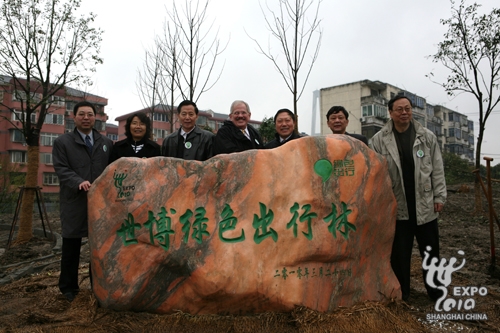 中國環(huán)境與發(fā)展國際合作委員會秘書長、原國家環(huán)?偩指本珠L祝光耀出席儀式,并親手種下第一株樹苗。來自上海市環(huán)保局、上海世博局、上海市綠委辦公室、上海市徐匯區(qū)政府、美國環(huán)保協(xié)會、中國民促會綠色出行基金以及77家行業(yè)協(xié)會和企業(yè)的代表參加了世博綠色出行林的揭牌儀式和植樹活動。