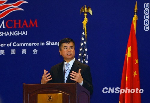 5月19日,正在訪華的美國商務(wù)部長駱家輝出席上海美商會招待會時表示:中美兩國在清潔能源領(lǐng)域的合作前景十分廣闊。 中新社發(fā) 湯彥俊 攝