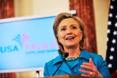 今年4月30日,希拉里在美國(guó)國(guó)務(wù)院舉行的上海世博會(huì)美國(guó)館開館慶祝招待會(huì)上致辭。