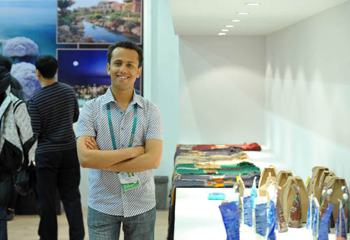 默罕默德今年23歲,是華東師范大學(xué)的一名留學(xué)生。因?yàn)榧葧?huì)阿拉伯語和英語,還會(huì)講比較流利的漢語,他成了世博園約旦館的一名工作人員,每天在展示和出售來自死海的天然護(hù)膚產(chǎn)品的展位前回答游客的咨詢,并時(shí)不時(shí)幫館內(nèi)其他約旦人與游客進(jìn)行交流和溝通。開幕以來,參觀世博園的游客不斷增加,由于約旦館無需排隊(duì)和預(yù)約,館里總是被來往的游客填得滿滿當(dāng)當(dāng)。從早到晚,穆罕默德都要站在展位前忙碌,只有在下午時(shí)用很短的時(shí)間出去吃個(gè)飯。
