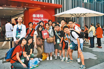 11位港生每日除承擔(dān)半天的義工工作外,其余時(shí)間便可作為普通觀眾,游覽世博園以一飽眼福。顧炫熙表示,同學(xué)們?cè)?周內(nèi)游覽了逾1/3的場(chǎng)館,還幾乎囊括所有熱門館,機(jī)會(huì)難得。據(jù)悉,中華基金中學(xué)稍后還將于7月組織近百名學(xué)生參加世博體驗(yàn)之旅。