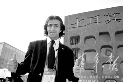 在土耳其館里有一個始終忙碌著的小伙子,他時而出現(xiàn)在咖啡館里招待貴賓,時而在館外歡快地跳著民族舞,時而進行人員調度,又時而扮演新聞官、翻譯的角色。這位1984年出生的土耳其小伙給自己取了一個“挺括”的中文名字——趙忠海,當記者笑言他簡直就是萬金油時,他若有所思地點了點頭,“又學了一個新詞,哈哈。”