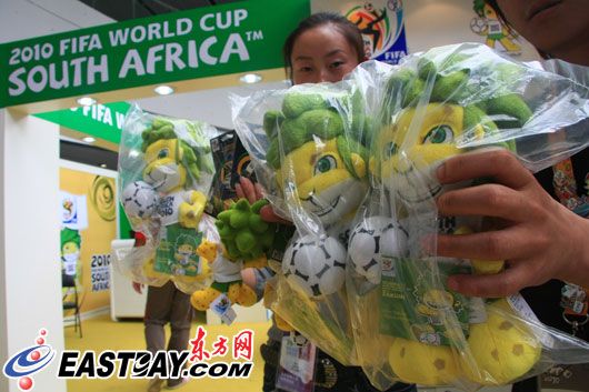從昨天開(kāi)始,世博園內(nèi)唯一一家南非世界杯特許商品銷售點(diǎn)正式營(yíng)業(yè)。扎庫(kù)米毛絨玩具、32強(qiáng)徽章套裝、小型合金大力神杯……近百種世界杯商品在世博抽最北段的地下二層區(qū)域開(kāi)售。記者今天走訪了幾家世博會(huì)特許商品銷售點(diǎn)發(fā)現(xiàn),扎庫(kù)米的魅力指數(shù)還是稍稍低于海寶。