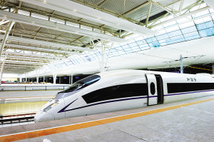 昨天,時速350公里的滬寧城際高速列車駛?cè)腓F路上海虹橋站 紀海鷹
