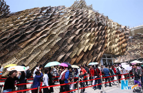 5月1日,參觀者在西班牙館外排隊(duì)等候入場(chǎng)。 新華社記者 王迎 攝
