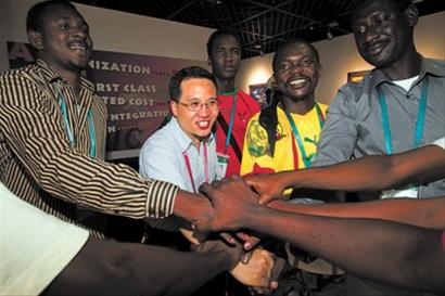 身材瘦小的陳錦田,走起路來風(fēng)風(fēng)火火,說起話來激情洋溢,舉手投足總是那么利落和自信。這位小個(gè)子男人,管理著世博園占地面積最大的場館非洲聯(lián)合館,有三個(gè)半足球場之大,館內(nèi)有42個(gè)國家館和一個(gè)非盟,場館面積和參展國數(shù)量都創(chuàng)下歷屆世博會(huì)之最。