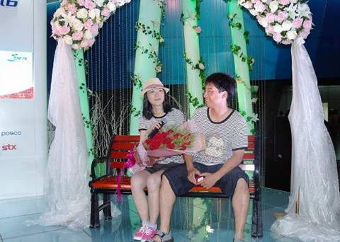 據(jù)主辦方介紹,此次來參加活動的情侶雙雙都是上海本地人,男方叫孫卓,27歲,是世博園內(nèi)的一名人民警察。女方叫陳佳,28歲,是一名政府所屬研究所的職員。陳小姐告訴記者,他們是通過QQ認識的,認識后才發(fā)現(xiàn)原來兩人是同一所中學和高中的校友,雙方有很多共同的興趣愛好,彼此互相吸引,一直到今年1月16日,兩人才開始正式交往,至今已經(jīng)6個月。孫先生告訴記者,希望通過此次活動,確認兩人堅定的選擇以及相互的愛,而且兩人也報名參加了8月16日韓國企業(yè)聯(lián)合館的“韓式婚禮”活動,希望能給自己心愛的女朋友一個難忘的婚禮。