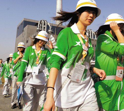 盛夏的世博園,站在路上不需5分鐘就會(huì)汗流浹背。每名志愿者都在不;卮鹩慰吞釂,烈日下始終笑臉相對(duì)。這些制服呈綠白兩色、昵稱“小白菜”的志愿者們,正在成為世博園里最可愛的人。上海世博局黨委副書記許偉國透露,“現(xiàn)在,一名游客平均接受志愿者服務(wù)10次。世博園已經(jīng)離不開志愿者,各處都在要求增援呢!”