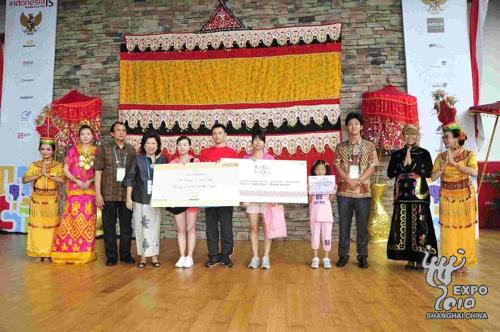 11日,上海世博會印度尼西亞館迎來第600萬名游客,來自蘇州的葉珍、葉心怡母女成為印尼館今天的“超級明星”。印尼館館長維德爾瑪·拉亞、印尼商貿(mào)部長馮慧蘭向這對母女贈送了禮品,包括“上海-雅加達(dá)-巴淡-民丹”的往返機(jī)票、3天2夜雅加達(dá)五星級酒店住宿及用餐,以及2張印尼館Enak!餐廳的免費就餐券。