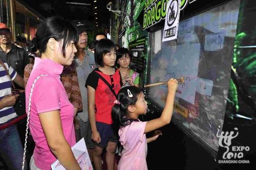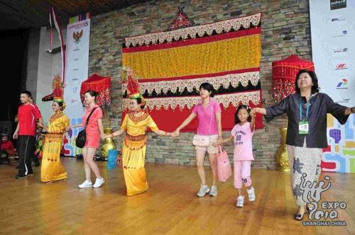 今天與葉珍母女一起來印尼館的還有王凱、王燁夫婦,他們與葉珍同在一家保險公司工作,葉珍母女把獲得的兩張機(jī)票中的一張送給他們,讓他們也享受到了印尼館帶來的幸運。(世博網(wǎng))