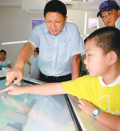 9月15日,雷達(dá)與公共安全技術(shù)專家、中國(guó)工程院院士吳曼青在太空家園館為游客講解世博“天眼”浮空器。(屠知力 攝)