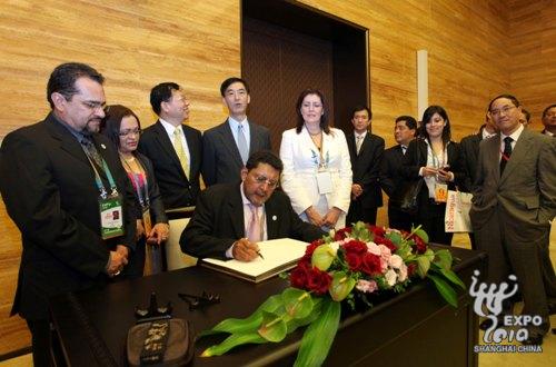 參觀中國國家館后巴亞爾多·阿爾塞·卡斯塔尼奧欣然在留言簿上留言