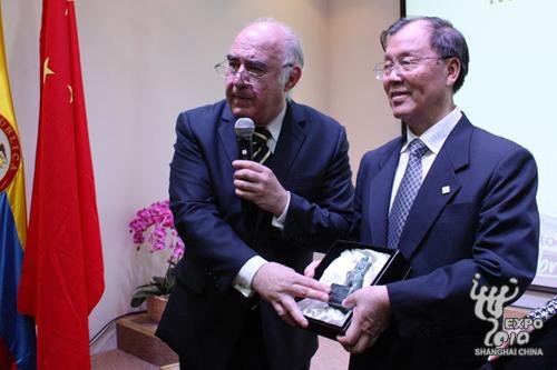 19日晚,“安蒂奧基亞,哥倫比亞最精彩的角落”投資推介會(huì)在哥倫比亞館舉行。推介會(huì)上,哥倫比亞館將“鎮(zhèn)館之寶”——為上海世博會(huì)專門雕琢的“綠寶石海寶”贈(zèng)送給上海世博會(huì)博物館。安蒂奧基亞省省長路易斯·阿爾弗雷德·拉莫斯、哥倫比亞館總代表古斯塔夫·加維利亞、上海世博會(huì)中國政府總代表華君鐸等出席活動(dòng)。