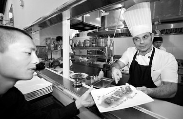 佩齊利平時為人和善,總是面帶微笑,他喜歡有挑戰(zhàn)性的工作,所以在廚房工作時總是十分敬業(yè)。隔著Zagara餐廳內(nèi)的玻璃櫥窗,顧客總能看到這位意大利大廚忙碌的身影,冷柜的食品是否保存妥當(dāng),操作臺是否衛(wèi)生,炸丸子的火候是否合適,菜肴的造型是否美觀……只要忙得過來,佩齊利總會親力親為!拔覀冞@個餐廳的位置遠離意大利館,而且又有其他很多餐廳在競爭,如果我做不好,誰會大老遠到這里來呢?”他一邊說,一邊將番茄醬緩緩倒入鍋中,精心為一道意大利式的肉丸子熬制湯汁。為了使菜肴更受歡迎,他還根據(jù)中國人的口味做了一些“微調(diào)”,比如少放些鹽,讓米飯更軟一些。