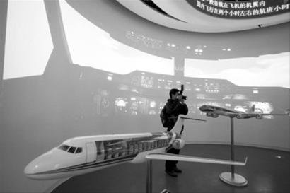 在中國航空館的等候大廳,擺放著各種未來客機模型。據(jù)介紹,飛翼客機與現(xiàn)有客機最大的不同是沒有機身和機翼的明顯區(qū)分,而是將寬大的機體和后掠的機翼完美融合在一起。與常規(guī)設(shè)計相比,這樣的設(shè)計使整個飛機機體都能產(chǎn)生升力,同時還能降低阻力,因此有望減少30%以上的燃料消耗。此外,飛翼客機獨特的外形使它在傾斜轉(zhuǎn)彎時更為平穩(wěn),乘客不易產(chǎn)生暈機反應(yīng)。除了這個模型外,飛翼外形的概念客機在航空館中還多次出現(xiàn)。