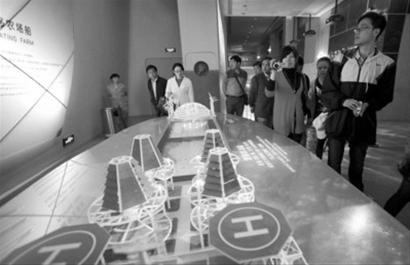 □中國船舶館(網(wǎng)上船舶館)展示的“海上農(nóng)場”模型,它采用風能供電,人們能在甲板上開辟出的“土地”上種植各種蔬菜等。新華社圖片