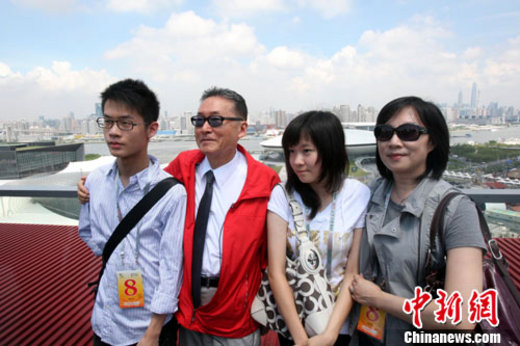 8月27日,臺(tái)灣知名學(xué)者李敖攜家人參觀上海世博會(huì)。圖為李敖攜家人在中國(guó)館頂樓平臺(tái)合影留念。中新社記者 湯彥俊 攝