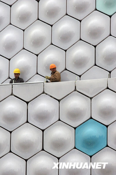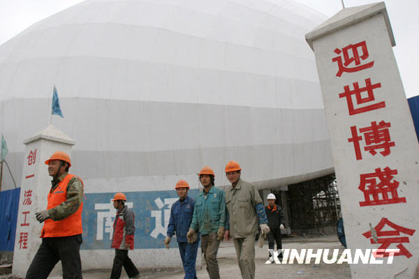 隨著2010年上海世博會(huì)臨近,上海世博園區(qū)大部分場(chǎng)館已初現(xiàn)雄姿。新華社發(fā)(許叢軍 攝)