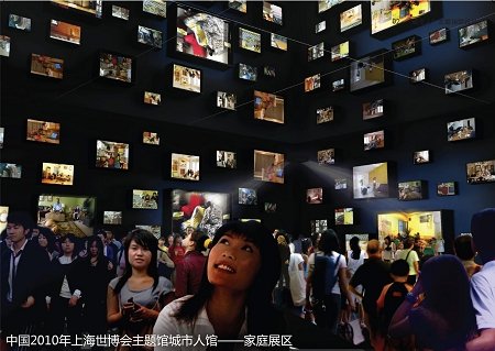 參觀者走進(jìn)主題館的城市人館,走進(jìn)天涯海角六個(gè)完全不同模式的家庭,通過(guò)鏡頭與他們共同感受生活的酸甜苦辣,了解人們對(duì)更加美好生活的向往。