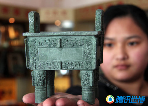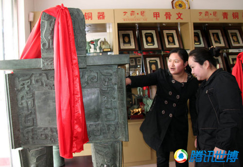 2010年4月7日,河南省安陽市文商閣文化禮品公司拍攝到的一司母戊鼎仿真品。