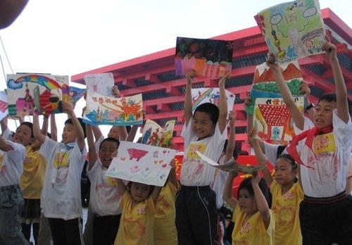 海峽兩岸小朋友彩筆描繪世博會(huì)