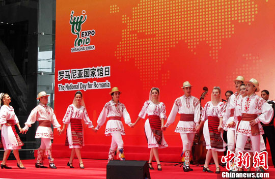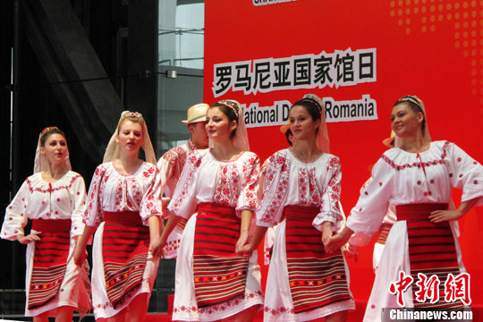 中新網(wǎng)上海7月29日電(陳婷婷)上海世博會(huì)29日迎來(lái)羅馬尼亞館日。羅馬尼亞藝術(shù)家們身著民族服飾,載歌載舞,獻(xiàn)上來(lái)自羅馬尼亞的浪漫情懷。