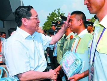 8月1日,上海氣溫高達38.6℃。正午時分,俞正聲和市領(lǐng)導(dǎo)吳志明、楊雄、丁薛祥、張學(xué)兵等首先來到世博園區(qū)后灘出入口,親切慰問公安、武警、志愿者和票務(wù)工作人員,感謝大家為世博安全運行所作出的貢獻。