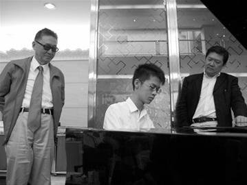 這邊波波跟偶像交流正歡,那邊李戡也跟自己的偶像、著名指揮家余隆聊得起勁,并大膽“班門弄斧”秀了一把鋼琴技藝,彈奏一曲 《黃河》選段,并接受了大師的現(xiàn)場指點(diǎn)。當(dāng)?shù)弥铌痪们皠偙槐贝箐浫『,余隆很是欣喜,他表示像李戡這樣既有文采又有藝術(shù)情趣,絕對是現(xiàn)代年輕人的榜樣,并希望今后能有機(jī)會在北京和李戡多聊聊音樂,甚至希望找時間和交響樂隊合作一下,讓李戡能走上舞臺,完成他演奏《黃河》的夢想。