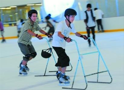 世博文化中心地下一層的真冰溜冰場成為游客避暑好去處