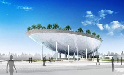 主體建筑更像一艘高懸于空中的大船,底部和甲板種滿了沙特標(biāo)志性植物:棗椰樹。在地面和屋頂栽種外觀類似椰子樹的棗椰樹,形成一個(gè)樹影婆娑、沙漠風(fēng)情濃郁的空中花園,沙特館的另一個(gè)亮點(diǎn)是充滿創(chuàng)意世界上最大的IMAX3D三維影院,影院屏幕1600平米-,等于兩個(gè)足球場(chǎng),以全新體驗(yàn)方式讓觀眾感受沙特古老的手工藝等。展館的 墻上 和 地上 以 水幕形式 展示 中沙兩國(guó)的文字書法。
