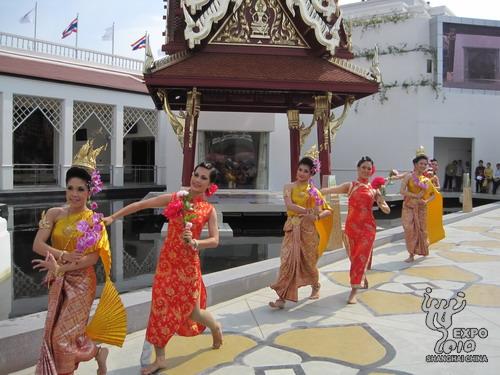自古中泰一家親!7月1日是新中國與泰國建交35周年紀念日,位于世博園B片區(qū)的泰國國家館舉行了火熱的慶;顒印